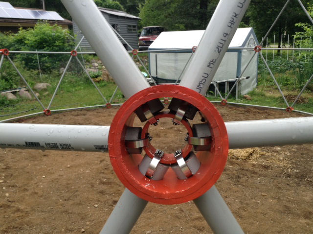 I have spray painted all the hubs and inner hubs with Krylon, to help with UV protection. It takes 9 cans. I have cut all of my struts from schedule 80 grey PVC, and drilled them. That took a total of four days, and determination, working alone.