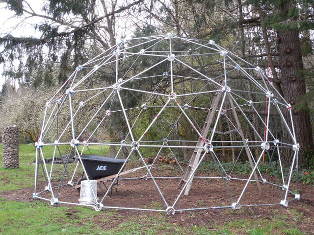 Hello, John and Carolyn, Happy 2nd day of Spring! Just finished putting my dome together. A lot easier with proper sized holes in the hubs. No where near as wobbly when going up.