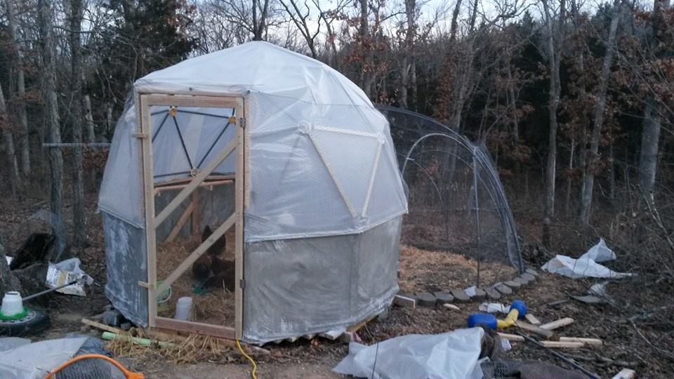 "Well, here is todays progress on the Chicken Dome Coop. 10 Foot dome on a 3 foot knee wall...