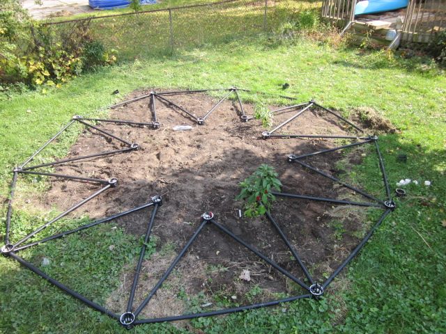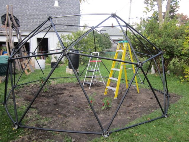 Top hub and final struts complete the dome.